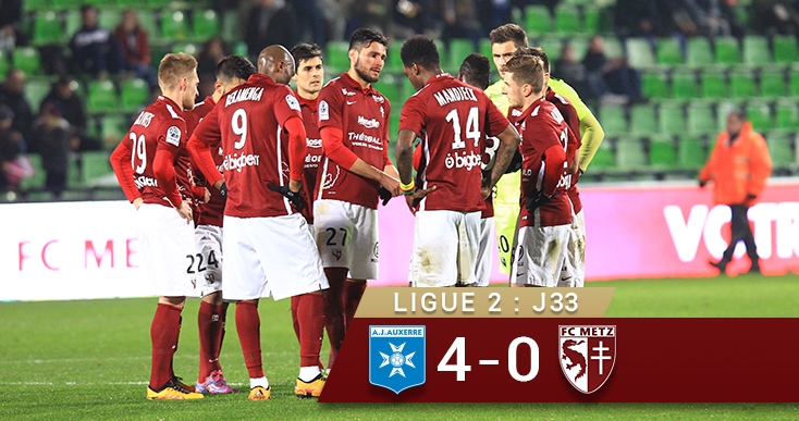 Malgré cette deuxième mi-temps catastrophe, les Lorrains se procuraient quelques opportunités pour laver l’affront mais c’était peine perdu sur la pelouse de l’Abbé Deschamps. Même le penalty obtenu en toute fin de match, tiré par Yeni Ngbakoto, était stoppé par le portier local (89°). Et comme si cela ne suffisait pas, les Lorrains concédaient un second pénalty dans les arrêts de jeu, transformé une nouvelle fois par Gaëtan Courtet (4-0, 90+4°).