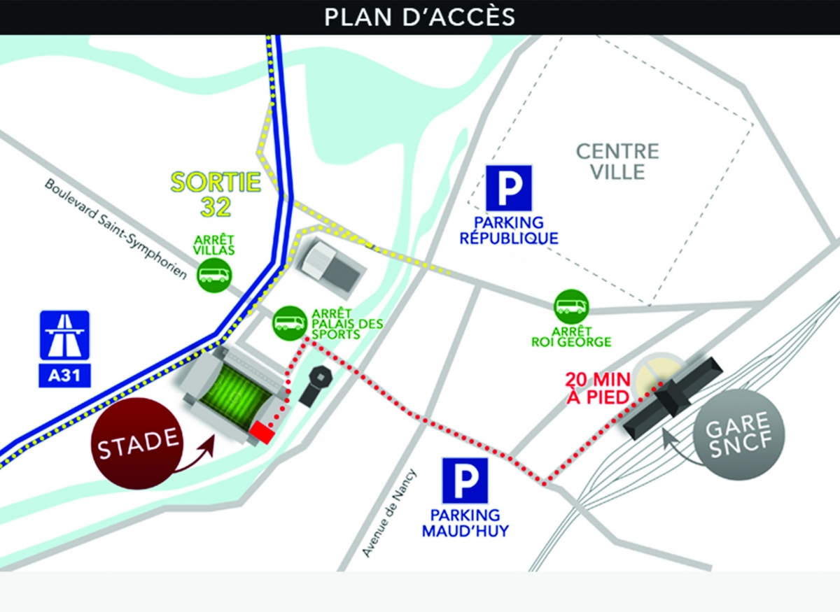 This E-Ticket must be printed, and then exchanged at Metz’s Stade Saint- Symphorien for a match ticket. Please be aware that only the match ticket will gain you entry in to the match, and that only the E-Ticket can be exchanged for a match ticket. You won’t be able to buy a match ticket at the Stadium, if you didn’t get an E-Ticket previously.