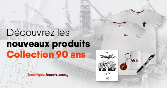À l'occasion des 90 ans du FC Metz, la Boutique Officielle vous propose une gamme exceptionnelle pour marquer cet évènement exceptionnel.