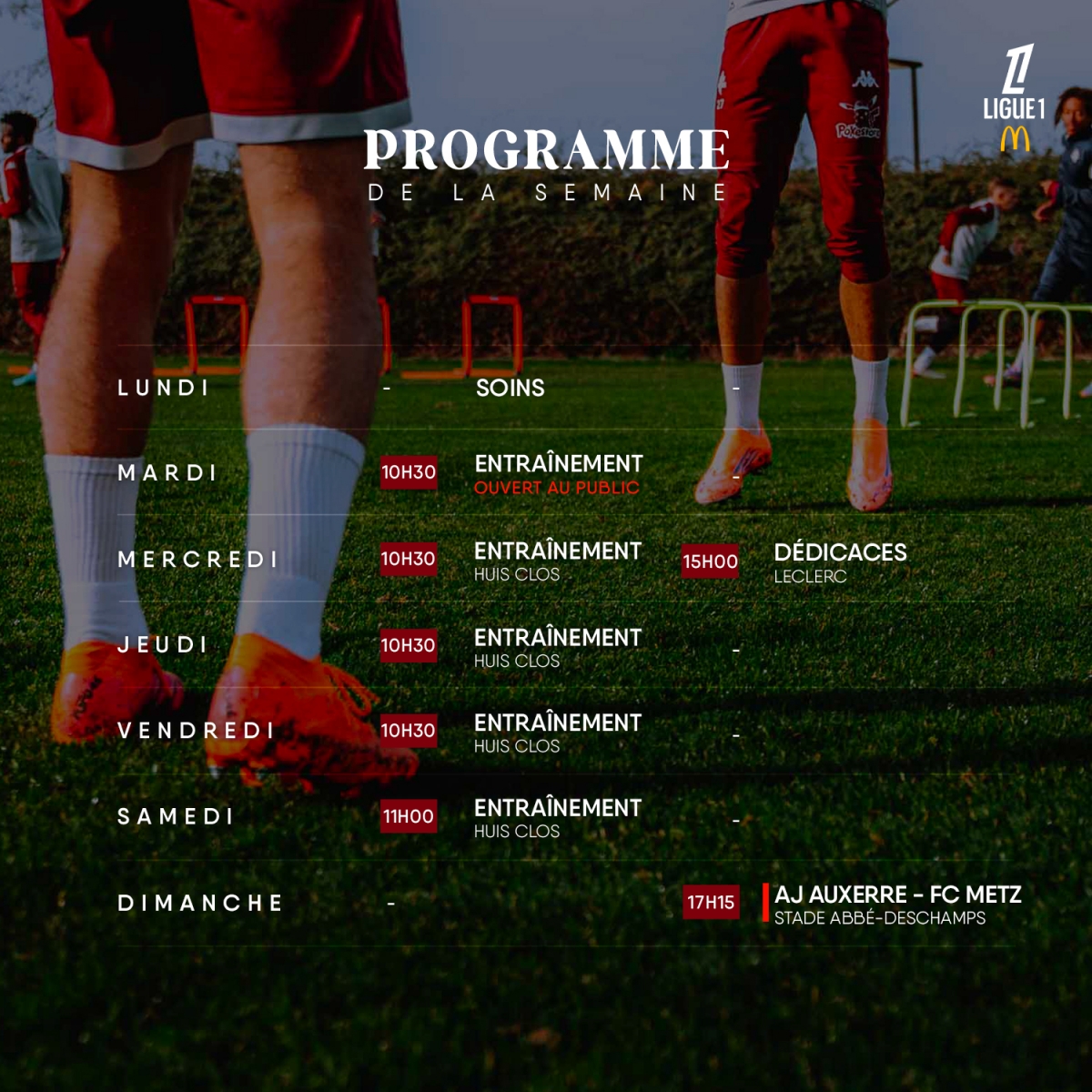 Le dimanche 7 décembre, le FC Metz se rendra sur la pelouse de l'AJ Auxerre, dans le cadre de la 15ème journée de Ligue 1 McDonald's. Le coup d'envoi de la rencontre sera donné à 17h15 au Stade Abbé-Deschamps.